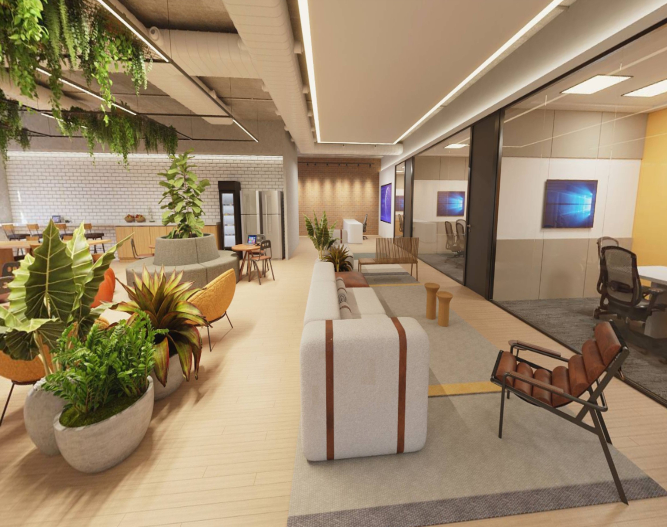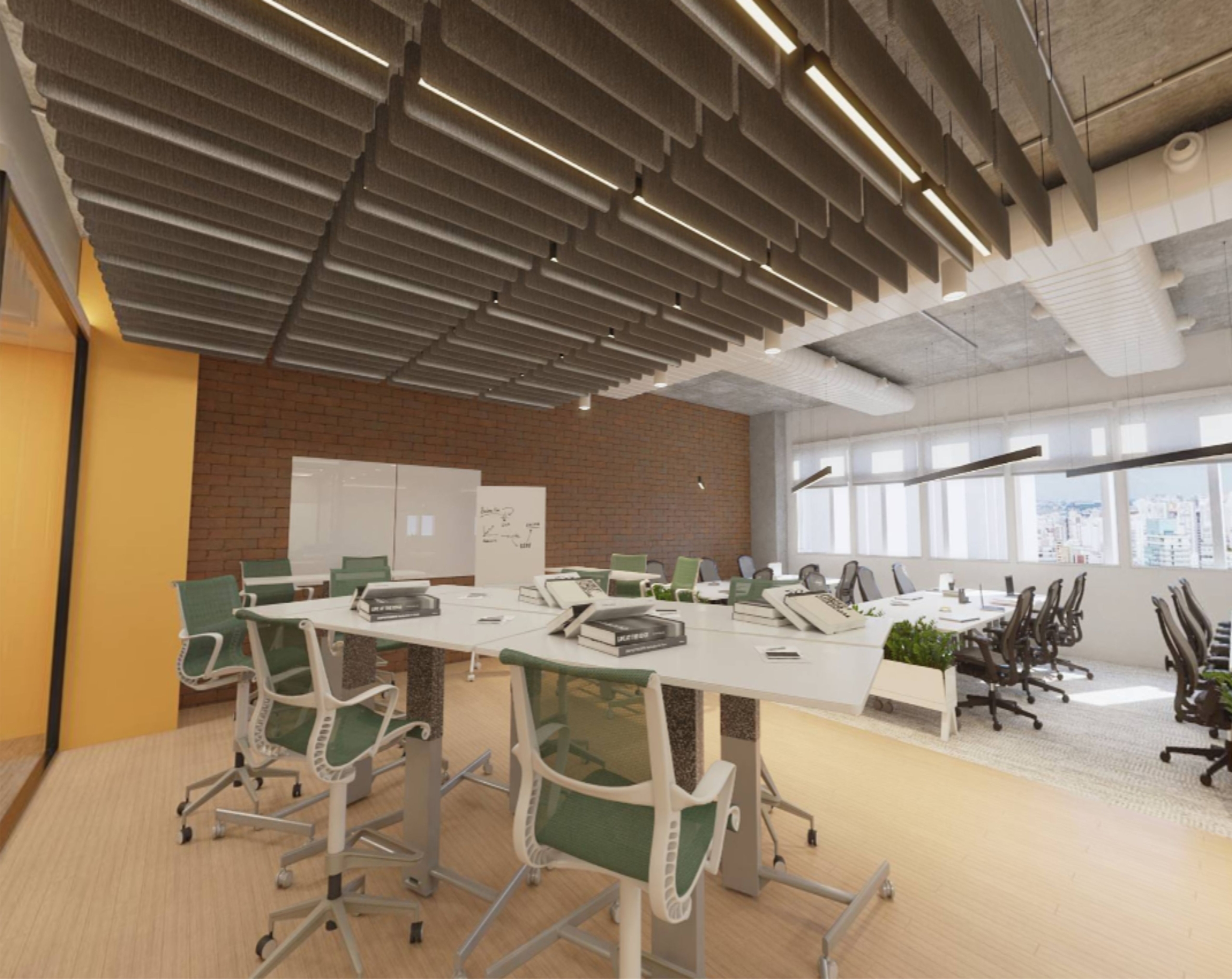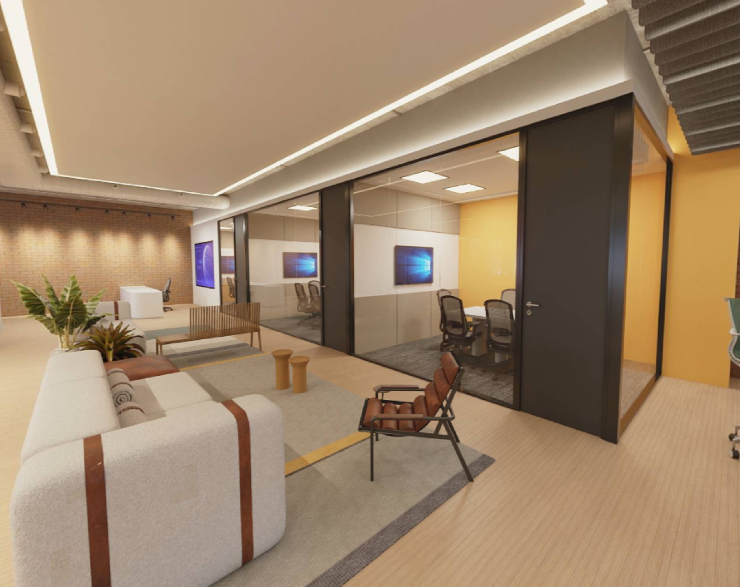 - Salas de reunião, perfeitas para equipes colaborativas;