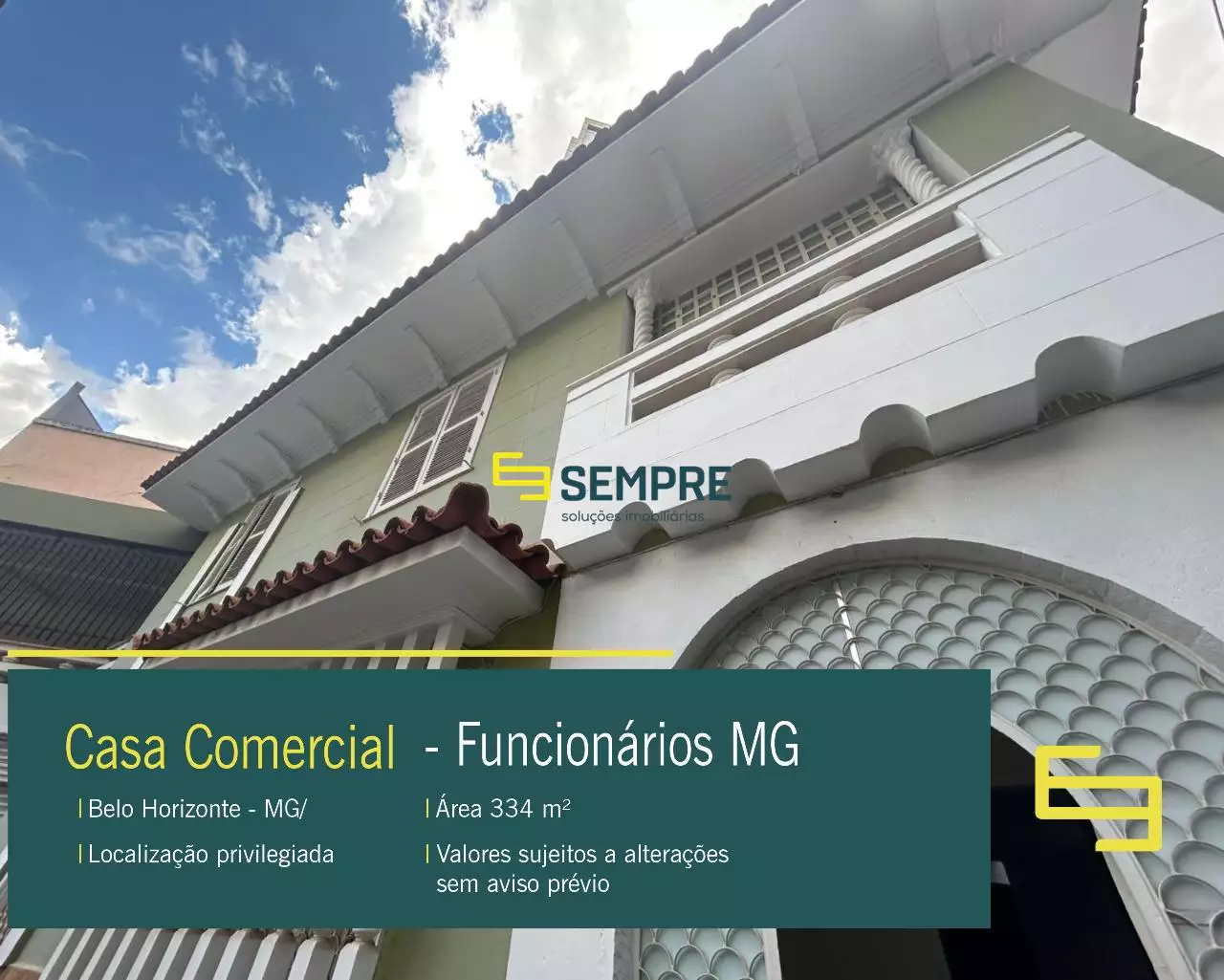 Localizada na região do Funcionários, espaçosa casa comercial com 334 m² de área construída, proporcionando amplas salas para atender às mais diversas necessidades. A casa possui: