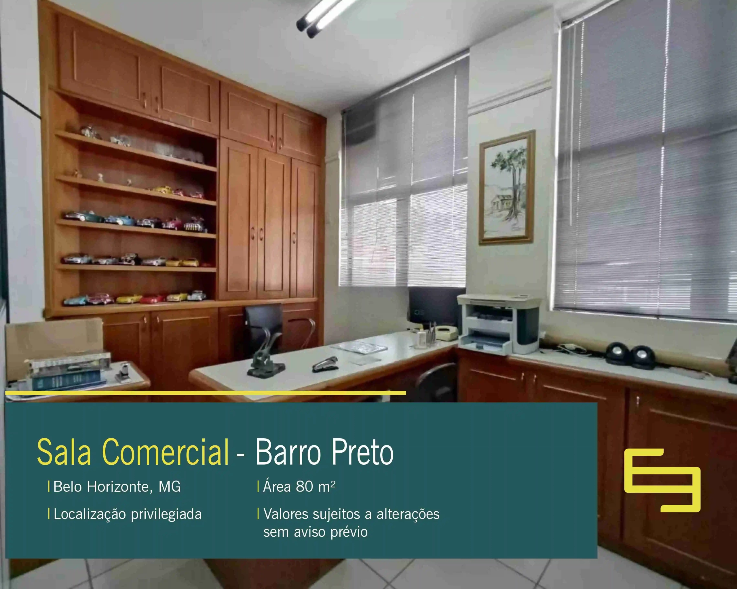 Localizada na região do Barro Preto, sala comercial de 80 m². Ideal para quem busca um espaço funcional e bem localizado para estabelecer seu negócio, a sala oferece as seguintes características: