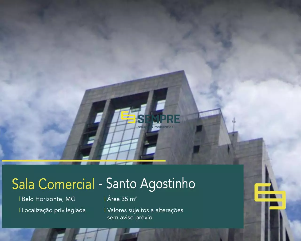 Localizada na região do Santo Agostinho, sala comercial de 35m² no Edifício Emblema Tower. Ideal para quem busca um espaço funcional e bem localizado para estabelecer seu negócio, a sala oferece as seguintes características: