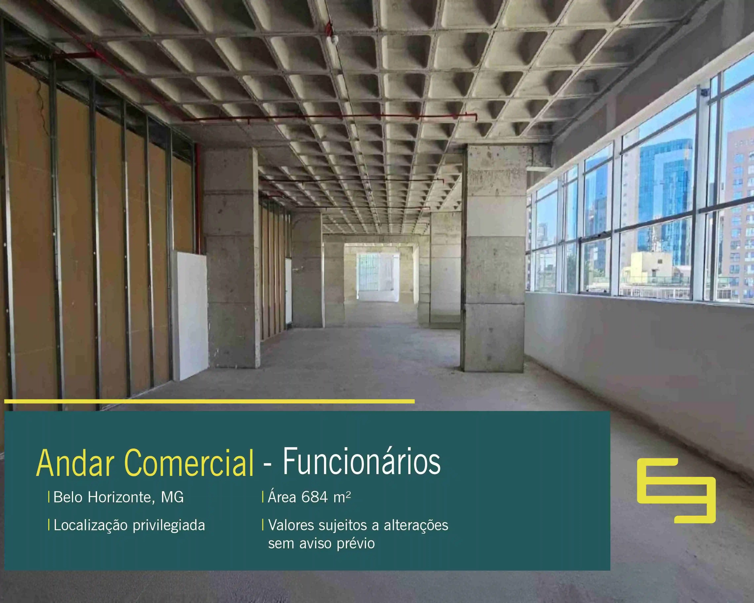 Aluguel de andar comercial na cidade de Belo Horizonte com 684 m² em vão livre, com uma fachada imponente prédio novo. O edifício é a definição de elegância e modernidade.
