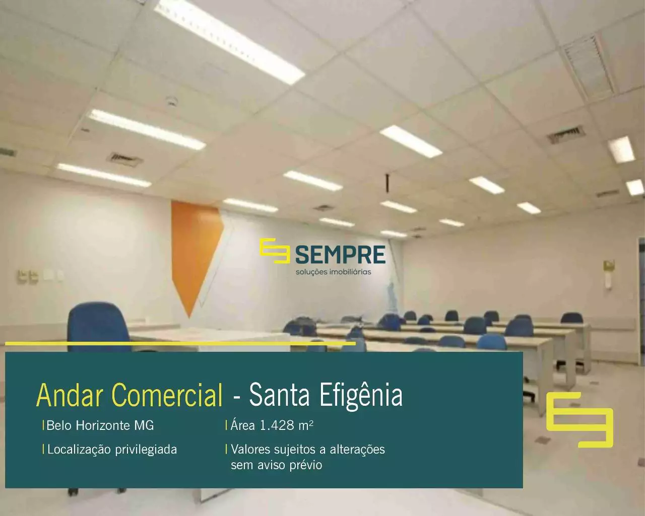 Andar de 1.428 m² no bairro Santa Efigênia, com 05 vagas, além disso, em uma das melhores localizações do Bairro, próximo à Lagoinha e com acesso pelas avenidas do Contorno e Avenida Dom Pedro I .