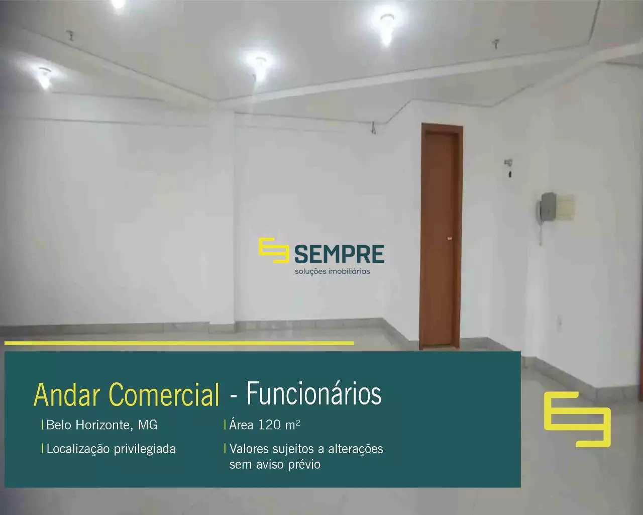 Está procurando andar corrido para alugar em Belo Horizonte? Temos a solução ideal: andar comercial no Funcionários, pronto para receber sua empresa. São 120 m² de área privativa, com a maior parte em vão livre, ideal para empresas que buscam agilidade, flexibilidade e localização estratégica.