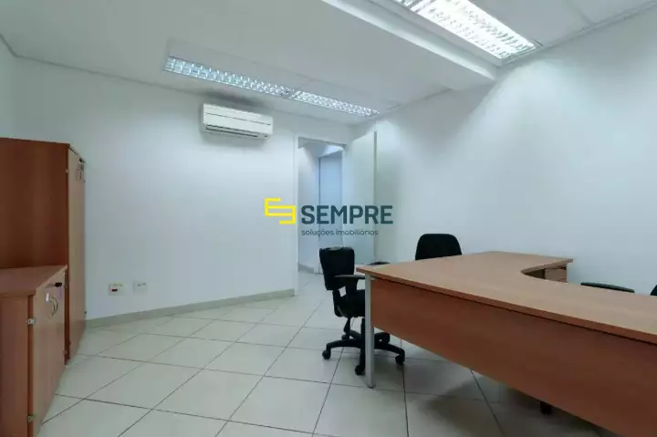 - Recepção com hall decorado, sala privativa, banheiro e espaço de apoio para copa ou arquivo;